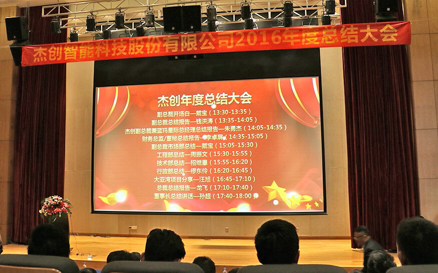 2016年12月30日下午,杰創(chuàng)智能在廣州保利假日酒店隆重舉行了2016年度工作總結(jié)大會。會上,公司總裁、副總裁、各部門總監(jiān)等高管就2016年度的工作開展情況、所取得的工作業(yè)績及存在的不足之處做了總結(jié)報告,并概括說明了下一年度的工作規(guī)劃和目標。