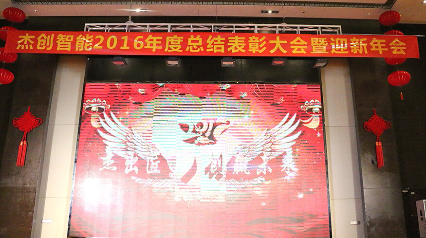 2016年12月30日晚,廣州保利假日酒店,豪華寬敞的宴會廳里,與會人員濟(jì)濟(jì)一堂,氣氛熱烈喜慶——杰創(chuàng)智能“杰出匠?,創(chuàng)贏未來”2016年度總結(jié)表彰大會暨2017迎新年會在此歡樂上演。杰創(chuàng)智能廣州總部全體員工,北京總部、藍(lán)瑪星際、全國各分公司的代表及嘉賓歡聚一堂,熱烈交流、快樂互動,賞節(jié)日、獲大獎、送祝福、品美食……共同度過了一個喜悅美好的夜晚。