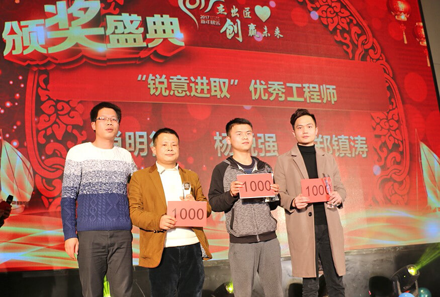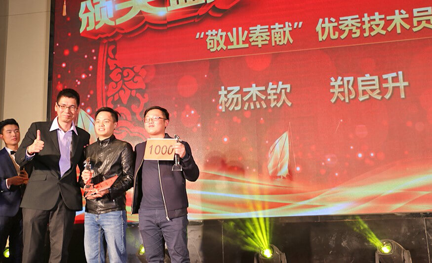 作為整場年會的重頭戲,頒獎典禮隆重而喜慶。在陣陣熱烈的掌聲和歡呼聲中,獲獎的先進(jìn)個人和團(tuán)隊一一揭曉,登臺領(lǐng)獎。優(yōu)秀項目經(jīng)理、優(yōu)秀工程師、優(yōu)秀技術(shù)員、優(yōu)秀施工員、優(yōu)秀實習(xí)生、優(yōu)秀員工、最佳服務(wù)之星、最佳長駐明星、最佳外派之星、最佳項目組(大亞灣項目組)、精誠合作獎(深圳團(tuán)隊)、銳意開拓獎(福建團(tuán)隊)、天降雄兵(藍(lán)瑪星際),共13組獎項,27位優(yōu)秀個人,4個先進(jìn)團(tuán)隊,成為了年會上最閃耀的主角。