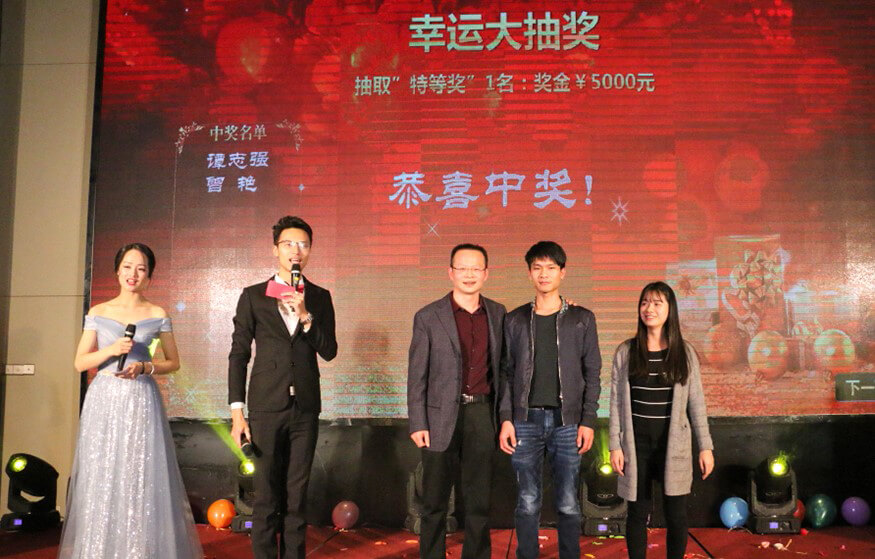 年會進(jìn)行過程中,還穿插開展了四輪幸運(yùn)大抽獎活動。在全場人員的興奮期待和無比喜悅中,隨著一個個大獎被抽出,掌聲、歡呼聲響徹會場,不斷掀起歡樂的高潮。幸運(yùn)抽獎既是提升年會喜慶氣氛的助興劑,還是給予嘉賓和員工的一份額外驚喜和回饋。