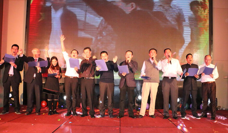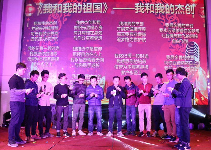 在度過三個小時的歡樂時光后,年會進(jìn)入了尾聲。全場人員齊齊進(jìn)入演唱狀態(tài),伴隨著優(yōu)美的旋律,接連合唱了《相親相愛一家人》、《同一首歌》、《朋友》三首歌曲。歌聲飛揚(yáng),群情高漲,將現(xiàn)場氣氛推向最高潮。大家放開歌喉,大聲唱出心底的心聲,盡情表達(dá)出對杰創(chuàng)、對他人的祝福和感恩。所有人的歌聲交織在一起,彼此的心靈也在密切地交流。在響亮動聽的大合唱中,杰創(chuàng)智能2016年度總結(jié)表彰大會暨2017迎新年會圓滿落下了帷幕。