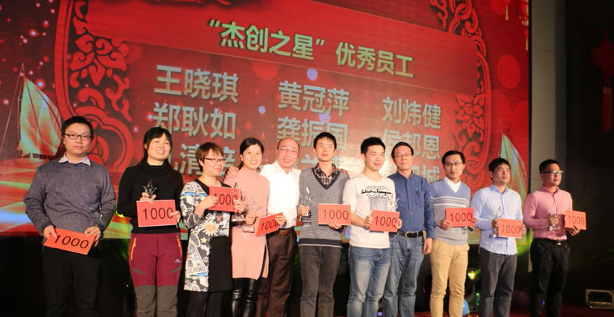 過去的一年,杰創(chuàng)人齊心協(xié)力,勇創(chuàng)佳績,涌現(xiàn)出一大批兢兢業(yè)業(yè)、成績斐然的團(tuán)隊和個人。為了表彰他們的先進(jìn)事跡和突出貢獻(xiàn),樹立榜樣,激發(fā)斗志,年會上舉行了激動人心的頒獎典禮。